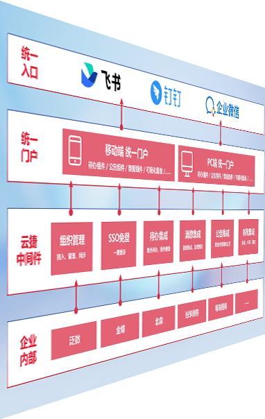 对协作平台提供支持服务,,,支持企业应用与协作平台对接,,,包含组织同步、、、、消息集成、、、、待办集成等。。。支持目前主流的协作平台:钉钉、、企微和飞书。。